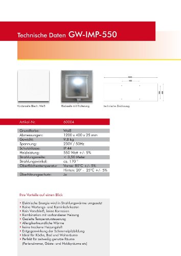 Riscaldamento a infrarossi a infrarossi, 550 Watt, in metallo, bianco, montaggio a parete e a soffitto, riscaldamento in vetro