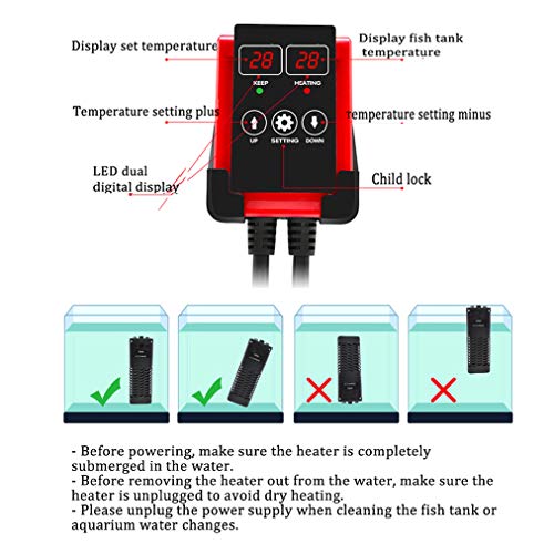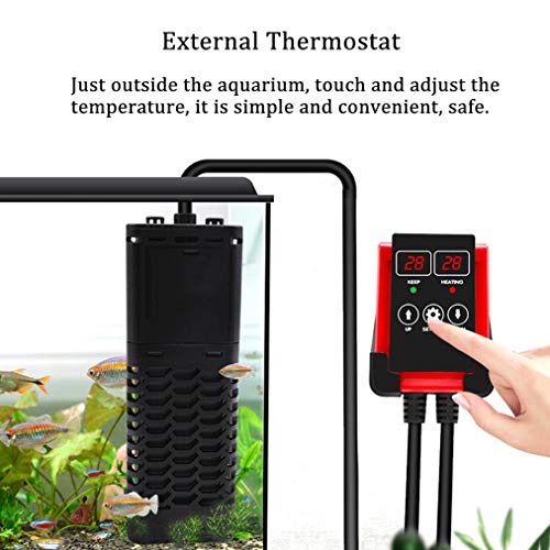 LED Temperature Display- Riscaldatore per acquario sommergibile con display a LED a grande schermo. Facile impostazione della temperatura tramite il controller esterno sul centro del cavo. La lunghezza del cavo di alimentazione esterno è di 1,5 metri.