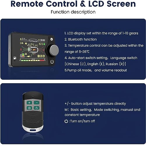 Telecomando: Diesel Air Heater viene fornito con un telecomando che ha una distanza effettiva fino a 100 metri. Inoltre, dispone anche di un interruttore remoto tramite app Bluetooth, che rende facile controllare il riscaldatore da remoto.