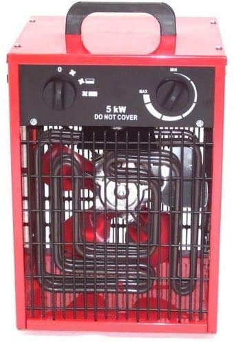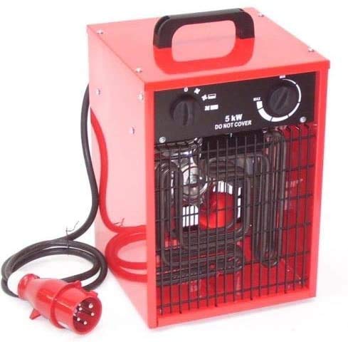 Riscaldatore elettrico 55158, 5 kW, 5000 Watt, 400 V, termostato CEE-16, 2 livelli di riscaldamento e funzione ventilatore, ventilatore AWZ