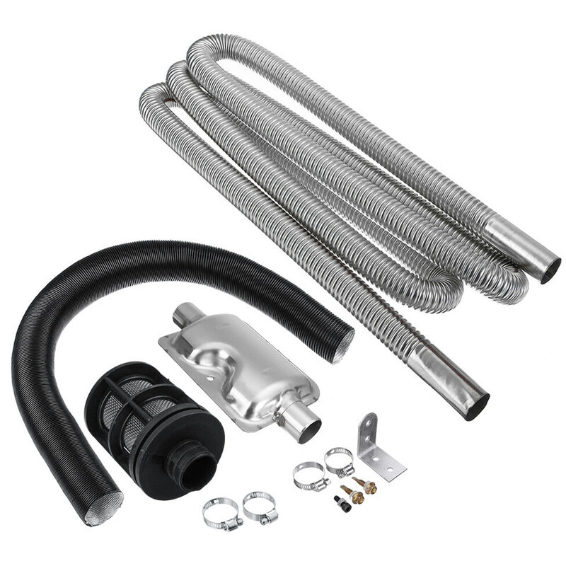 Questo set di tubi di scarico e filtro silenziatore per riscaldatori d'aria è adatto per veicoli con riscaldatori ad aria diesel, puoi installarlo o sostituirlo da solo. Se hai bisogno di questo set di strumenti, vieni a provare, non ti deluderà. Caratteristiche: Realizzato in materiale di acciaio inossidabile, che ha le caratteristiche di non deformarsi, piegarsi e ha un lungo tempo di servizio. Puoi installare questo set di strumenti da solo, non sono necessarie troppe competenze professionali, è facile per te completare l'installazione o la sostituzione. Questo set di accessori adatto per riscaldatori diesel ad aria di parcheggio ha un'ampia gamma di applicazioni. La produzione di precisione e le prestazioni perfette, la superficie brillante senza sbavature, ti offrono un'esperienza di utilizzo migliore. Set completo: questo set include tubi di scarico di lunghezza 2500 mm, tubi di aspirazione da 25 mm, un silenziatore, un filtro dell'aria e 4 fascette. Specifiche: Materiale