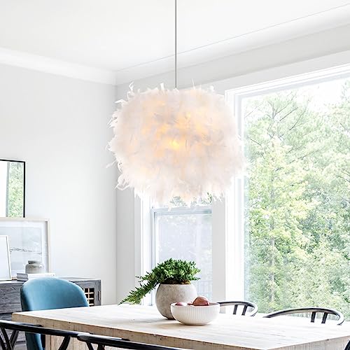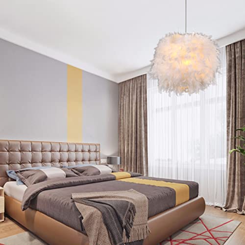 Riserva Lampada a Sospensione Lampadario Piuma Moderna Plafoniera Sferico Creativa E27 Illuminazione con Linea Regolabile, MAX 60W