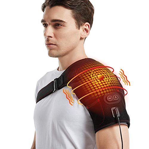 Rishaw Tutore Spalla Riscaldato, Massaggiatore per Spalla Supporto Con 3 Modalità Di Riscaldamento e Vibrazione, Per Dolore Alla Spalla, Artrite, Dolore Muscolare, Uomo e Donne