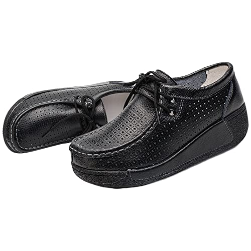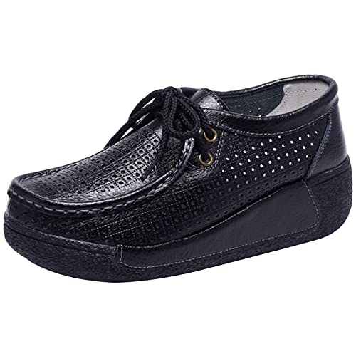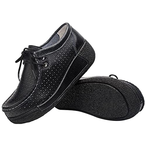 Rismart Donna Formale Piattaforma Nascosto Tacco Cuneo Scamosciato Sneaker Scarpe Nero Svuotare,37 EU