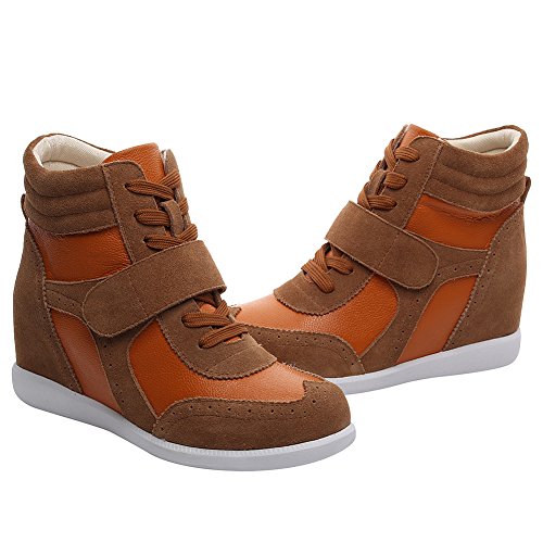 Rismart Donna Tacco a Zeppa Hook&Loop Brogue Alto Cima Confortevole Elegante Sneaker Scarpe SN8599A(Marrone,EU37)
