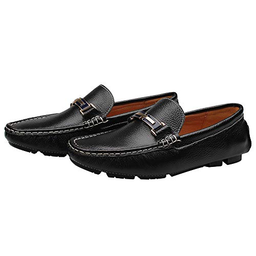 Rismart Uomo Guida Auto Scivolare su Comfort Casuale Pelle Mocassini Scarpe Nero,42 EU