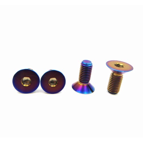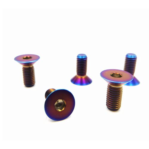 RISON Titanium Ti Bolts M5x15mm Titanium Countersunk Hex Socket Cap Bolt Bruciato Blu Testa Piatta Hex Socket Cap Vite Confezione da 5