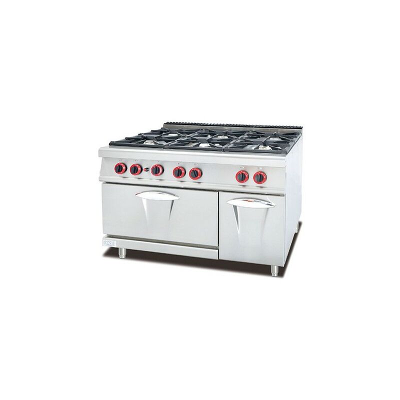 Cucina a Gas 6 fuochi con forno a Gas S/70. Forno che raggiunge una temperatura da 120 a 330 °C. Zona cottura sagomata che permette una cottura su tutto il piano e che da la possibilità di una facile pulizia.