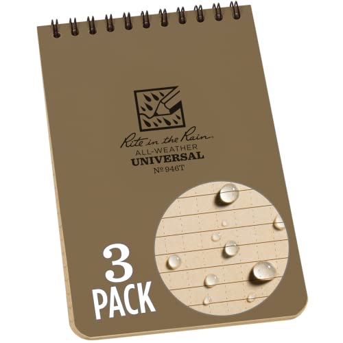 Rite in the Rain all-weather top-spiral notebook, modello universale 10,2 x 15,2 cm, 3 pezzi Spirale superiore 10 x 15 cm Tan Cover