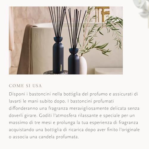 Come si usa: Apri la bottiglia di profumo con il liquido deodorante casa, posiziona i bastoncini profumati e ruotali per qualche minuto per una fragranza più intensa