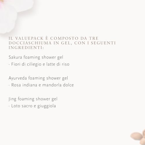 Meravigliose fragranze: Delizia i tuoi sensi con l'aroma di fiori di ciliegio e latte di riso, arancia dolce e legno di cedro, e rosa indiana e olio di mandorle dolci del kit bagnoschiuma donna
