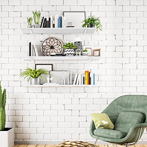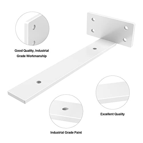Riuog Confezione da 6 staffe per mensole resistenti, invisibili, galleggianti, a L, in metallo, supporti hardware per mensole (bianco, 30 cm)