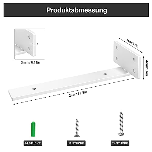 【Mensole spesse e resistenti】: 3 mm di spessore, 20 cm di lunghezza, con finitura in ferro. Queste staffe bianco sono realizzate in ferro di alta qualità. Con viti ad alta resistenza. Vale la pena notare che se utilizzato con legno spesso 4 cm, ha una funzione nascosta per aumentare la consapevolezza moderna della moda per la tua stanza e risparmiare molto spazio.