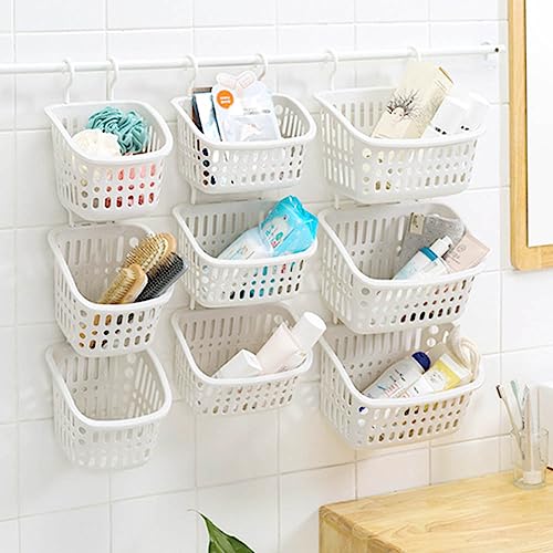 Riutilizzabile Portaoggetti da Doccia in Plastica da Appendere, Cesto Portaoggetti da Cucina, Gancio Multifunzionale, Cesto Portaoggetti da Appendere, Contenitore per Bagno, Cucina (Bianco)