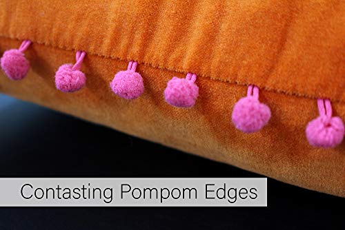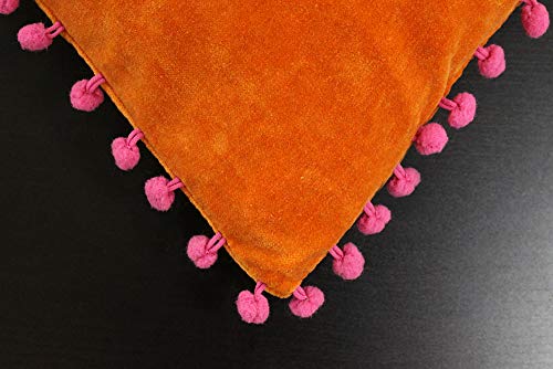 Riva Home Velvet Pompom C/C 45X45 Ora/Fuch, Cotone, Orange/Fuchsia, 45x45cm