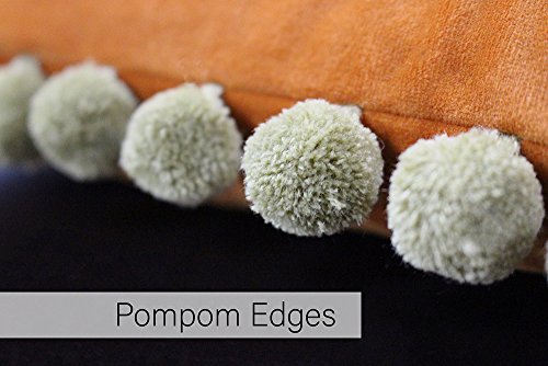Questo vivace cuscino presenta bordi in velluto pompon in colori a contrasto