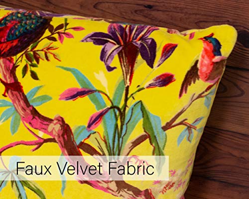 Caratterizzato da una stampa dettagliata di uccelli e fiori su tessuto vellutato.