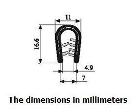 Rivestimento per bordi, nero, ampio. Altezza 1,7 cm, ampiezza interna 0,1-0,45 cm, HM-00920