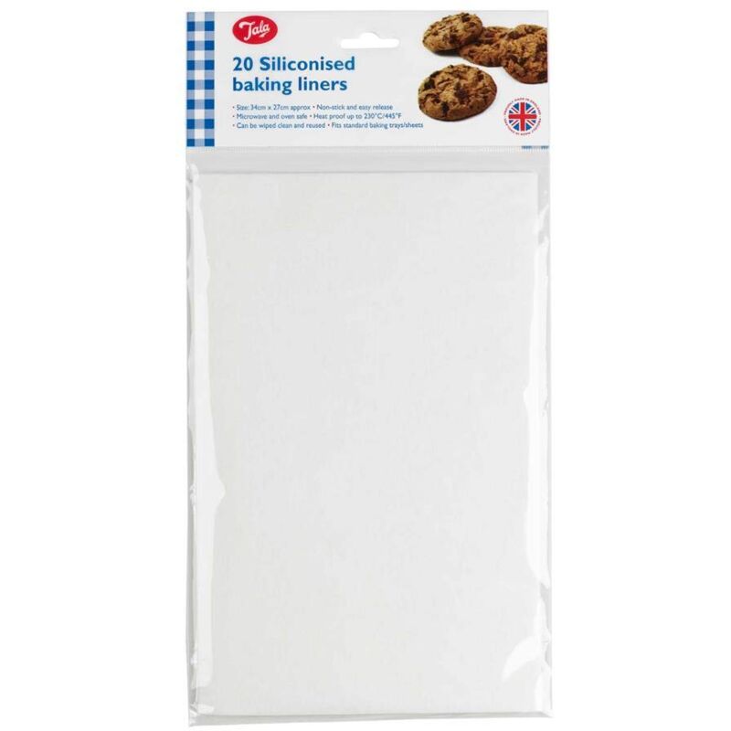 Superficie antiaderente. Utilizzabile nel microonde e nel forno. Resistente fino a 230°C. Pulire con un panno umido e riutilizzare. Adatto a vassoi standard da cottura. Tala 20-Piece Rectangular Siliconised Baking Liner Set, White