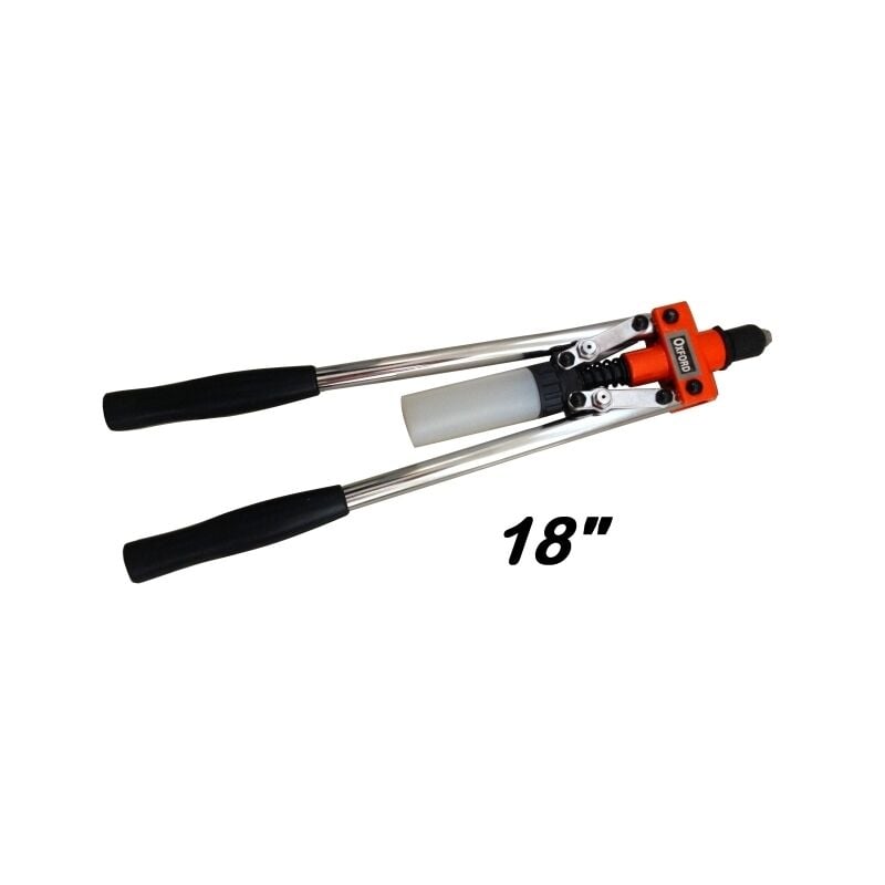 Rivettatrice manuale a doppio manico. Strumento perfetto per gli amanti del fai da te ma affidabile e solido anche per professionisti. Manici con copertura in pvc. Serbatoio di recupero dei rivetti spezzati. Il doppio manico permette di effettuare operazi