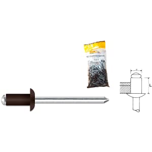 Rivetti a strappo ad estremità aperta in alluminio verniciato testa di moro RAL8017, testa bombata, mandrino in acciaio zincato.
