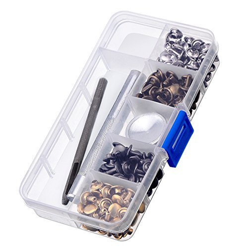 100 Set Rivetti Pelle Doppio Rivetti di Testa con Kit di Attrezzi di Fissaggio per Pelle Mestiere Riparazione Decorazione, 4 Colore