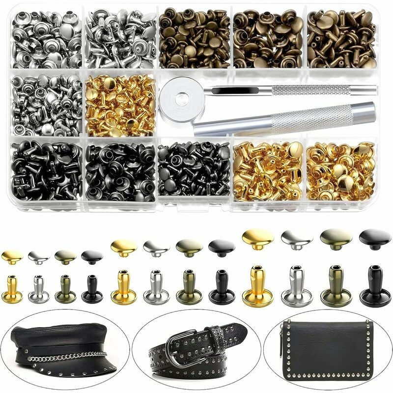 Valore 180 set di rivetti - inclusi 180 set di rivetti doppi in 4 colori e 3 dimensioni, con 3 strumenti di impostazione (1 base rotonda, 1 strumento per punzone e 1 strumento di installazione), strumenti precisi possono perforare con precisione i fori in base alle dimensioni del rivetto, anche se sei una nuova mano, saprai rapidamente come usarlo, facile da usare e conveniente, abbastanza bene da soddisfare la tua richiesta di diversi mestieri fai-da-te. Aggiorna materiale di alta qualità - I rivetti in pelle sono realizzati in ferro, piccolo, leggero, antiruggine e resistente, non facile da sbiadire, forte e robusto per artigianato in pelle, bracciali in pelle o vestiti. Ti assicuriamo di acquistare!,Ampia applicazione: questi rivetti in pelle sono accessori utili che possono essere applicati per l'artigianato in pelle fai-da-te, per riparare e decorare bracciali, cappelli, jeans, giacche a vento, cinture, scarpe, sandali, giacche, borse, ecc. > Più colori e dimensioni - I rivetti e