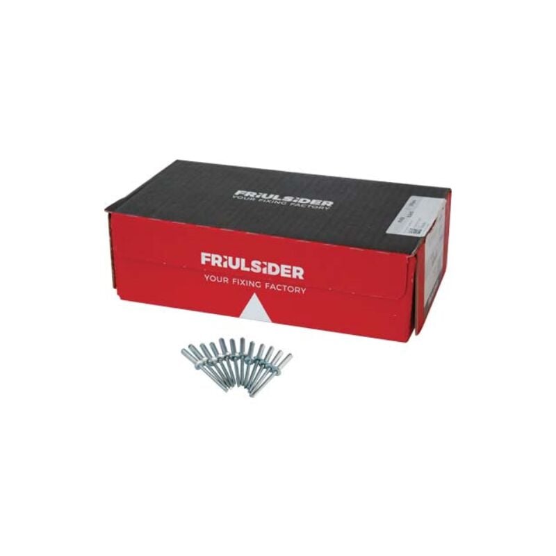 Rivetto a strappo alluminio friulsider Mm 6,0x15 cf=pz 500 con corpo in alluminio e chiodo in acciaio zincato bianco.