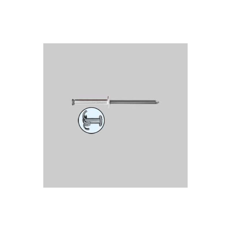 Corpo in alluminio naturale, chiodo in acciaio zincato. Particolarmente adatto per il fissaggio di qualsiasi oggetto su materiali teneri. La boccola del rivetto si apre in pi— parti durante il fissaggio assicurando cos un ottimo accostamento anche su superfici disuguali. Rivetto a strappo 'graf' 4,8x16 mm Rivetti