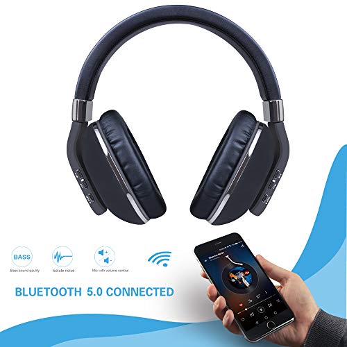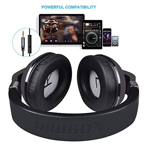 Riwbox XBT-780 - Cuffie over ear Bluetooth, stereo Hi-Fi, con e senza fili, con microfono integrato per lezioni online, ufficio in casa, PC, cellulari, TV (nero)