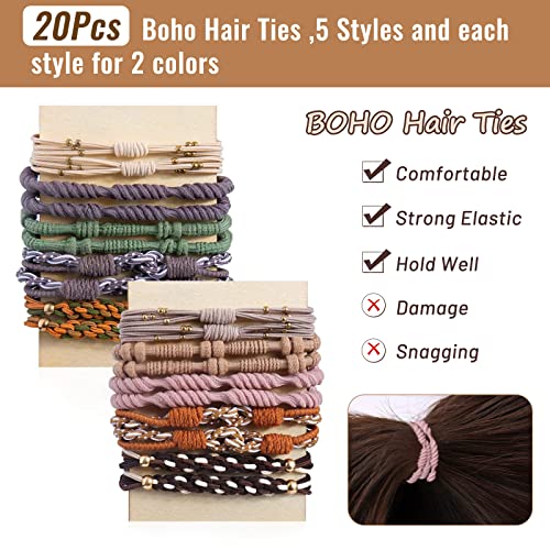 RIXERKOC 20 pezzi di fasce per capelli elastici Boho per donne, braccialetti e elastici per capelli a doppio uso per capelli spessi/code di cavallo, accessori per capelli senza danni per ragazze