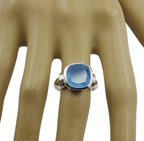 RIYO Jaipur Anello in Argento 925 Blu Naturale Accattivante, Anello in Argento con Pietra calcedonio Blu