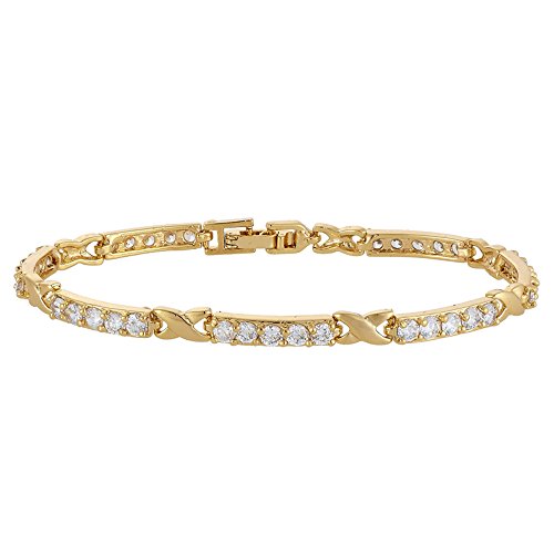 Rizilia Gioielleria Round Cut Birthstone Bianco Topaz Gemstone Oro Giallo Oro 18K Placcato [180mm / 7inch] Braccialetto Tennis Elegance Moderno [Sacchetto di Gioielli Libero]