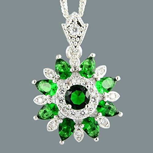 Rizilia Girocollo con Pendente a Forma di Fiore Placcato Oro Bianco 18k Smeraldo simulato Verde Smeraldo