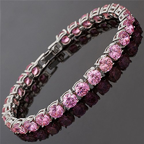 Rizilia Taglio Rotondo Simulata Zaffiro Rosa CZ 18K Placcato Oro Bracciale Tennis, [18cm/7inch]