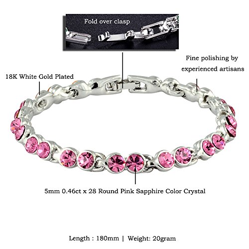 Rizilia Taglio Rotondo Simulata Zaffiro Rosa CZ 18K Placcato Oro Bracciale Tennis, [18cm/7inch]