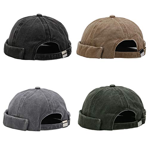 RK-HYTQWR Cappello Hip Hop Vintage Street Dance Cappello Regolabile Senza Tesa Melone Berretto per Unisex, Cappellino Melone Lavato Cachi, Cachi