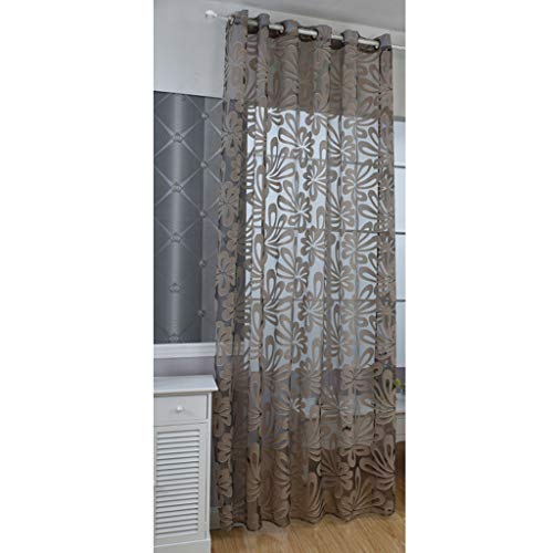 RK-HYTQWR Moderna Jacquard Floreale Tulle Voile Porta Finestra Tende Pannello Trasparente Sciarpa Mantovane per Soggiorno Camera da Letto, Beige Cinque Dita Tenda Fiore Grande, Beige