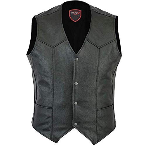 Rksports, Giubotto da moto, In pelle, Con lacci, Da uomo, Colore: nero