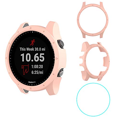 RLTech Cover per per Garmin Forerunner 945, HD Pellicola Protettiva + Ultra Slim PC Case di Gel AntiGraffio Protettiva Custodia per Garmin Forerunner 945 (Rosa)