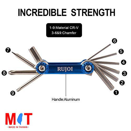 RM-01LB/RUJOI Kit di attrezzi per bici con set multi-lool, set di attrezzi per riparazione bici con brugola, chiave Torx, Phllips e vite piatta.