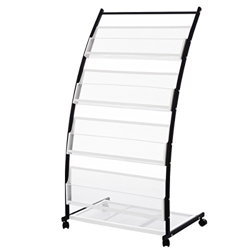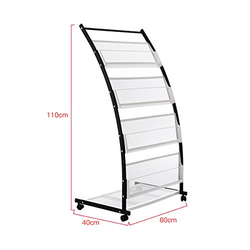 RMAN Espositore da Terra A4 con Ruote Porta Brochure Espositore Literature Magazine Display Stand Rack 4 scomparti in formato A4 A5, Bianco e Nero