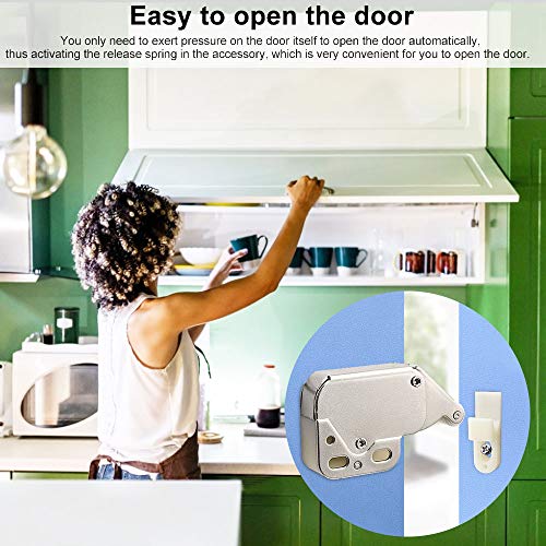 Eccellente elasticità: molla di rilascio di alta qualità nella serratura del cassetto dell'armadio, ispessita e resistente, facile da attivare all'apertura della porta con la sua eccellente elasticità.