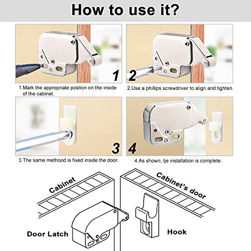 Chiusura a pressione nascosta per armadi: il pacchetto con 2 mini set di serrature, una migliore sostituzione per ante incassate, finte e a chiusura di testa come mobili da cucina, armadi da camera da letto, porte da soffitta e quasi tutti gli armadietti con un'anta.