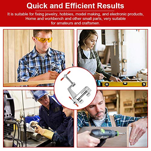 ️ [Facile da usare]: questa morsa è molto facile da usare. Può essere bloccato dove è necessario lavorare. Basta ruotare la traversa in alto per aprire e chiudere l'apparecchiatura sul desktop, quindi ruotare la vite per bloccare i piccoli oggetti da manipolare in posizione.