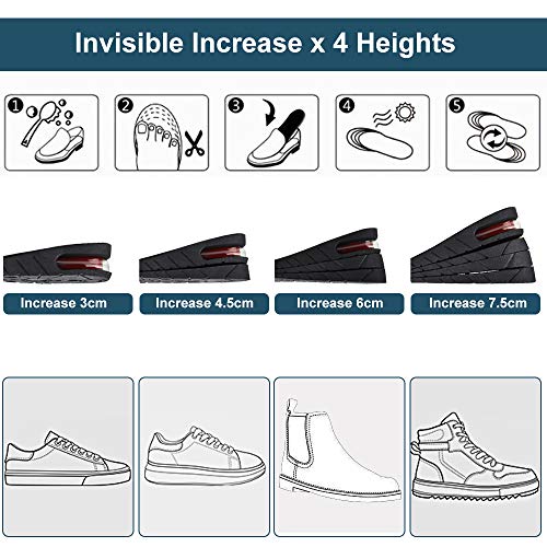 RMENOOR 1 Paio di Solette ad Altezza Regolabile 4 Strati Aumento di Altezza Solette Confortevole Solette Scarpe Rialzate per Alleviare lo Stress da Camminata