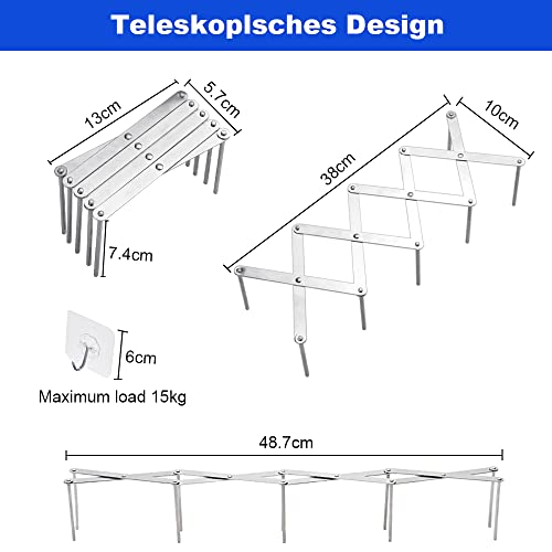 ❂【Set di scaffalature per estensibili supporti per coperchi di pentole】 Riceverai un totale di 2 griglie per estensibili supporti per coperchi di pentole e 4 ganci. Usando i ganci, puoi appendere alla parete lo scolapiatti in acciaio inox, dove puoi appendere utensili da cucina come spatole, pentole, cucchiai e scolapasta. Il gancio in dotazione è autoadesivo, non richiede colla aggiuntiva e ha una forte capacità di carico.