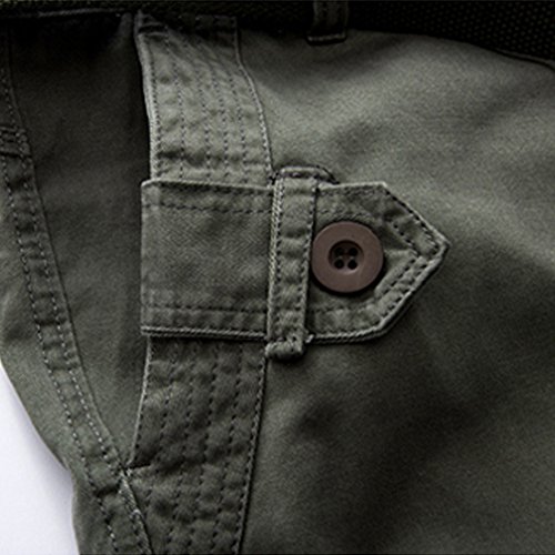 Rmine Pantaloni cargo da uomo, molte tasche, in cotone, per il tempo libero, pantaloni da lavoro (senza cintura), verde, 32W