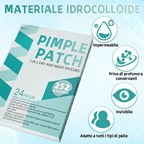 Rmolitty Cerotti Brufoli, Hydrocolloid Patch, Impermeabili e Traspiranti Patch Per l'acne, 2 in 1 Giorno e Notte Che Assorbono Le Secrezioni Cerotti Per Acne (252 pcs)