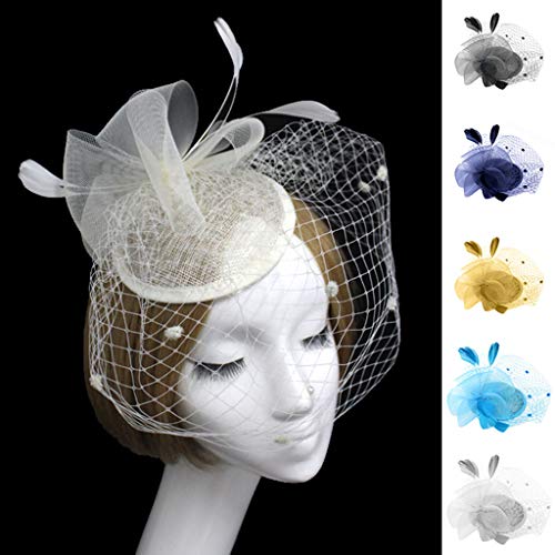 Rmoon Cerchietto con piume e veletta Cappelli Donna Fascinator Copricapo Fiore Mesh Organza Nastri Cocktail Cappelli Cerimonia Matrimonio Cappello (Oro)